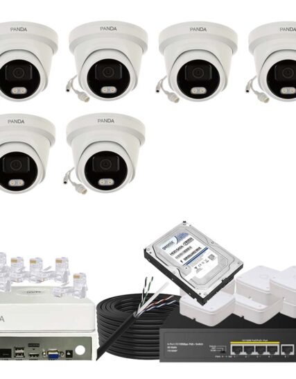 Panda Blue Series 4MP IP CCTV Kit | 5 Dome + 1 Bullet | 8CH NVR | 8 PoE + 2 Uplink | 500GB