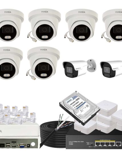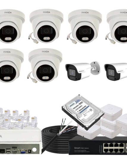 Panda Blue Series 4MP IP CCTV Kit | 6 Dome + 2 Bullet | 8CH NVR | 8 PoE + 2 Uplink | 500GB