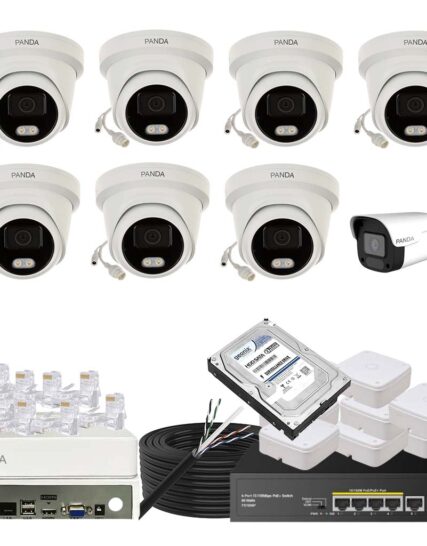 Panda Blue Series 4MP IP CCTV Kit | 7 Dome + 1 Bullet | 8CH NVR | 4 PoE + 2 Uplink | 500GB