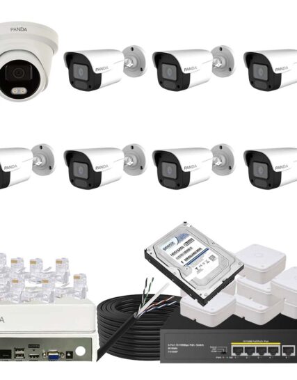 Panda Blue Series 4MP IP CCTV Kit | 1 Dome + 7 Bullet | 8CH NVR | 4 PoE + 2 Uplink | 500GB