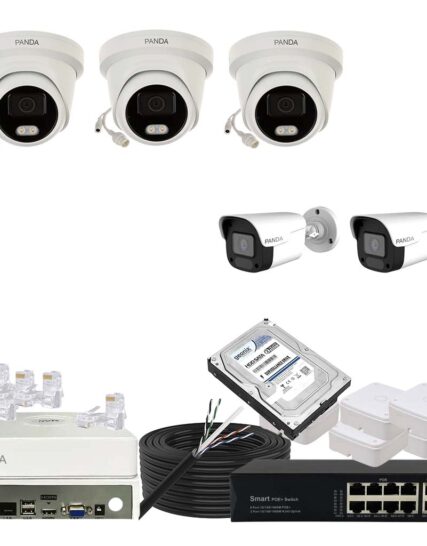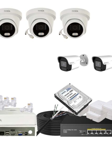 Panda Blue Series 4MP IP CCTV Kit | 3 Dome + 2 Bullet | 8CH NVR | 4 PoE + 2 Uplink | 1TB