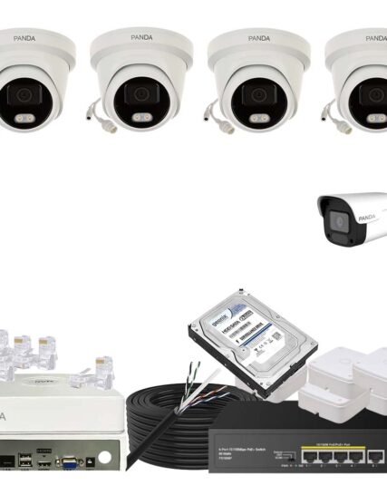 Panda Blue Series 4MP IP CCTV Kit | 4 Dome + 1 Bullet | 8CH NVR | 8 PoE + 2 Uplink | 500GB