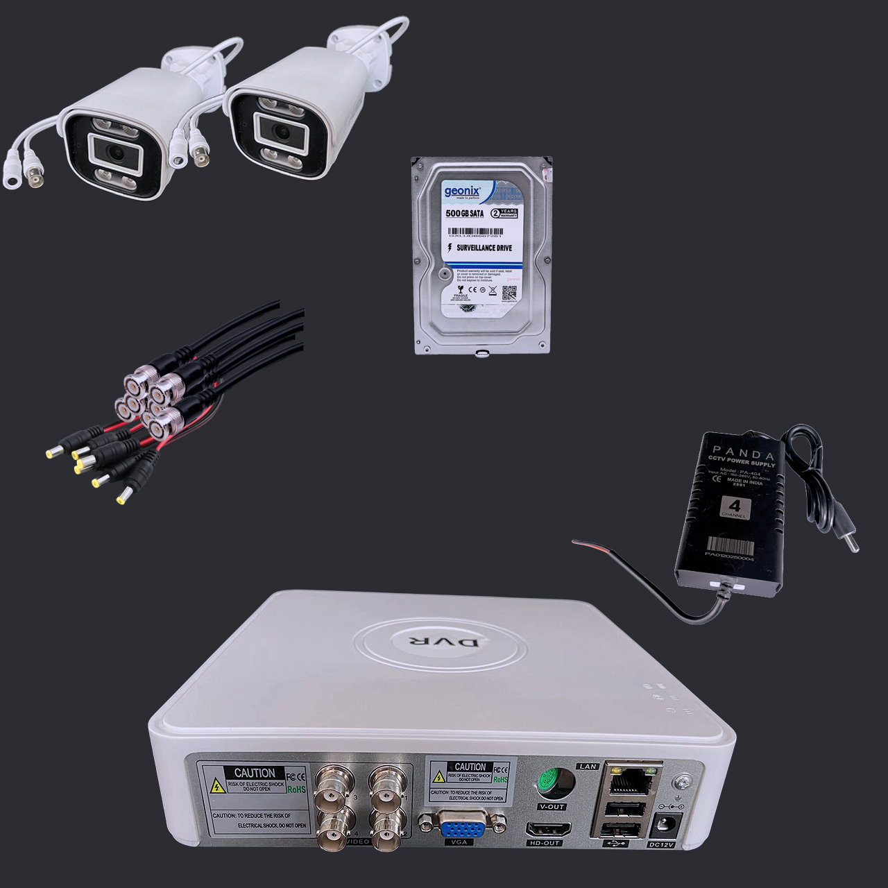 Panda 5MP CCTV Kit with 2 Bullet Cameras, 4CH DVR, 500GB HDD Security Camera (500 GB, 4 Channel)