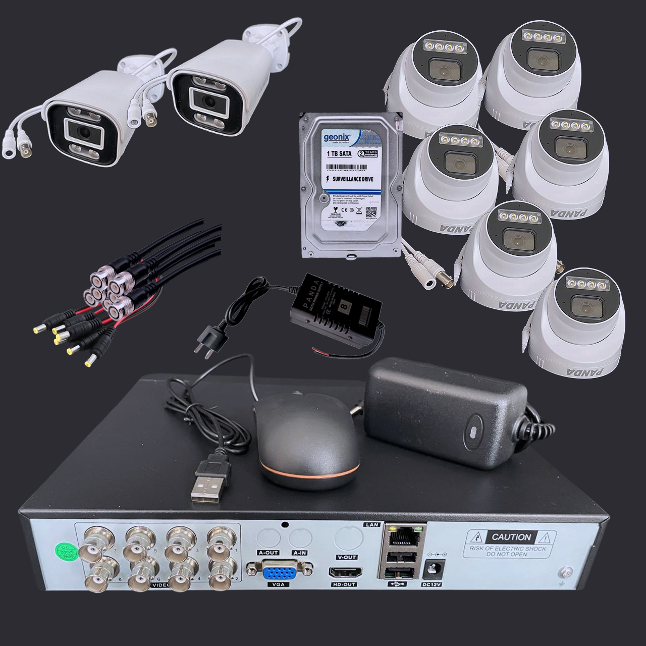 Panda 5MP CCTV Kit with 6 Dome 2 Bullet Cameras, 8CH DVR, 1TB HDD Security Camera (1 TB, 8 Channel)