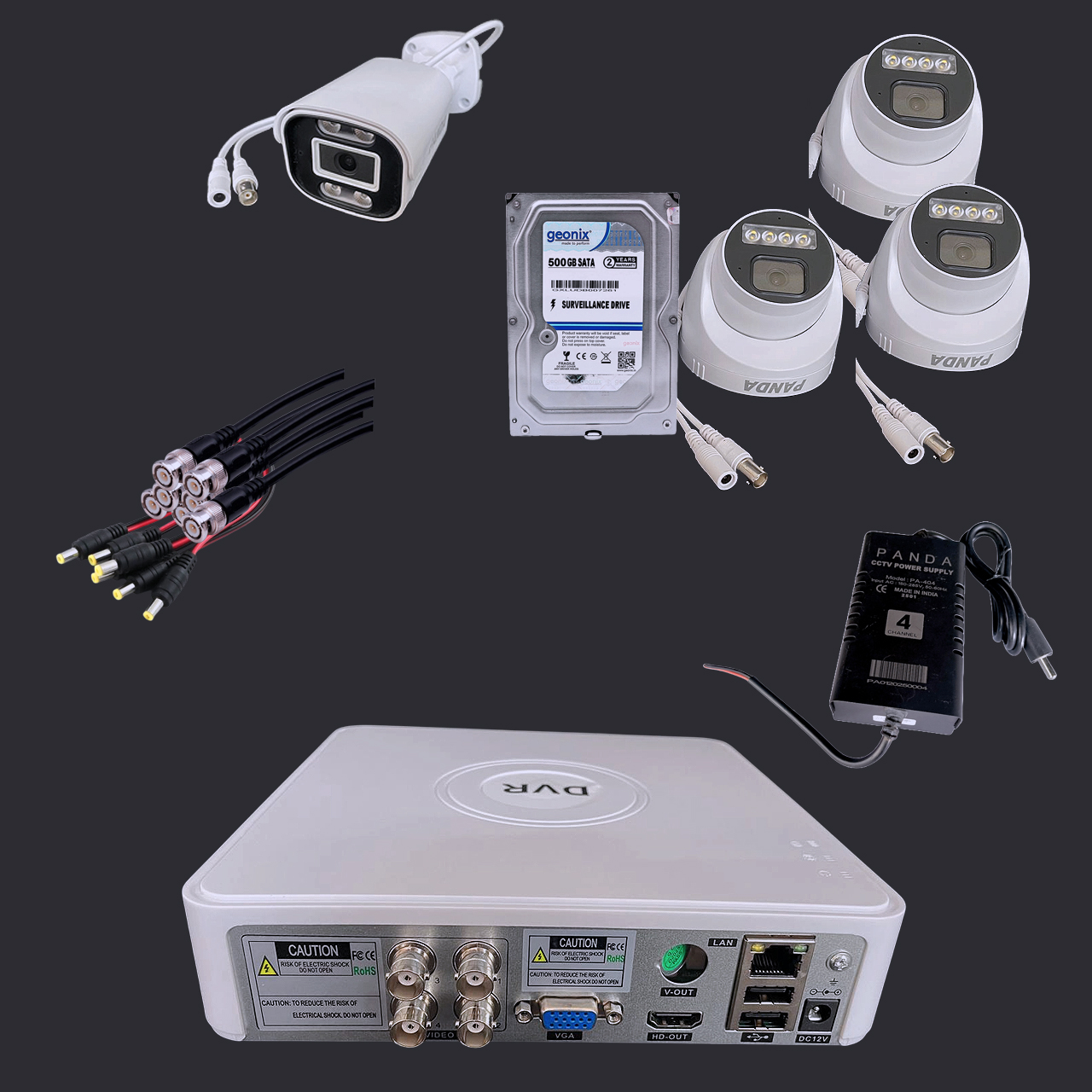 Panda 5MP Dome Bullet CCTV Kit with 500GB HDD, 4CH DVR, Mobile View, Security Camera (500 GB, 4 Channel)
