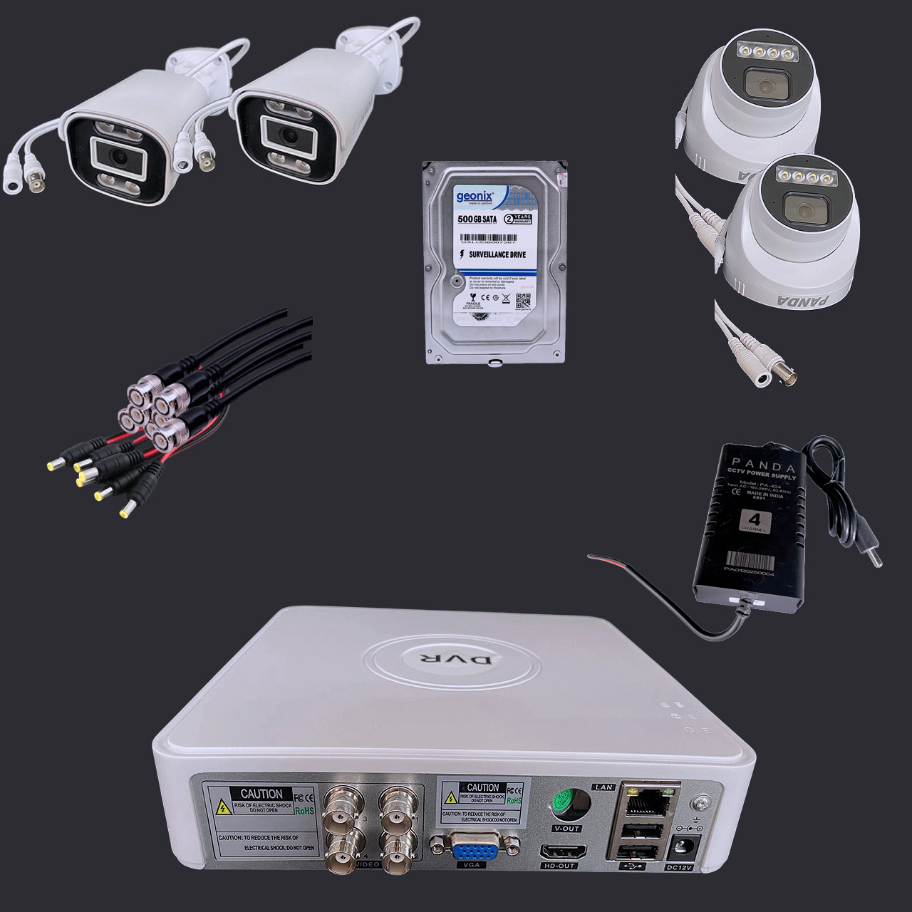 Panda CCTV Camera SET 5MP With Audio 2Dome 2Bullet 4CH DVR 500GB MobileView Nightview Security Camera (500 GB, 4 Channel)